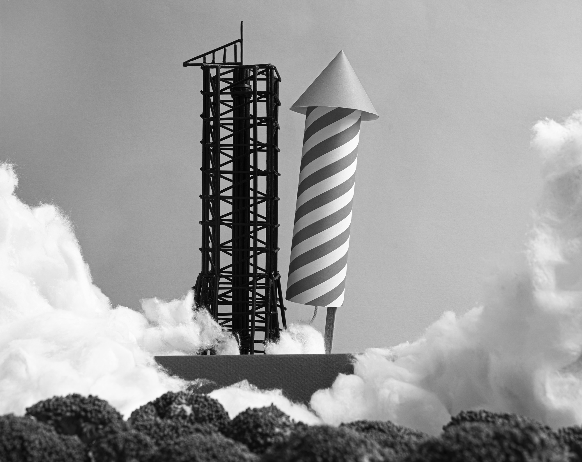 In collaboration with Della Miranda we built a small model with objects from some daily objects: some toothpicks, toasts, broccoli, wadding, etc. After that, I made the shooting with some paper backgrounds. For the lightning, I used a single led light and some reflectors. Then the finals corrections and retouching were made with photoshop.
